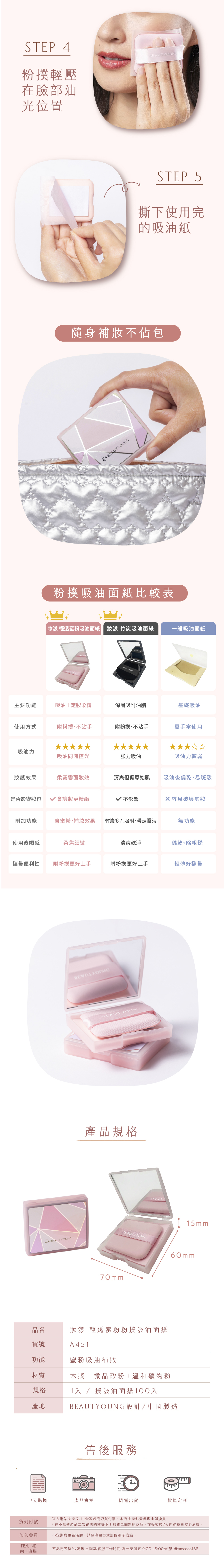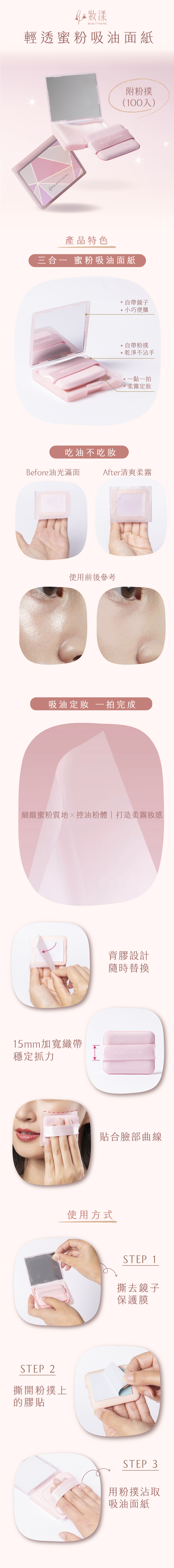 ·吸油不沾手,輕拍即可溫和帶走多餘油光 ·觸感親膚不刺激,肌膚清爽不黏膩