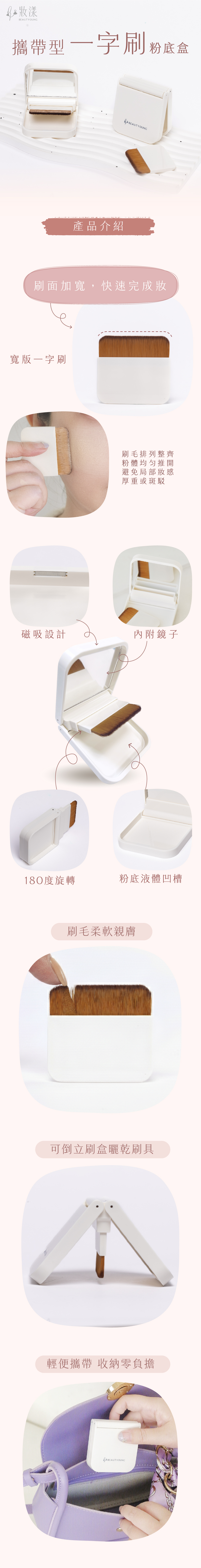 ●寬版迷你一字刷:刷毛柔軟有支撐力,細緻貼膚不吃粉不留粉痕