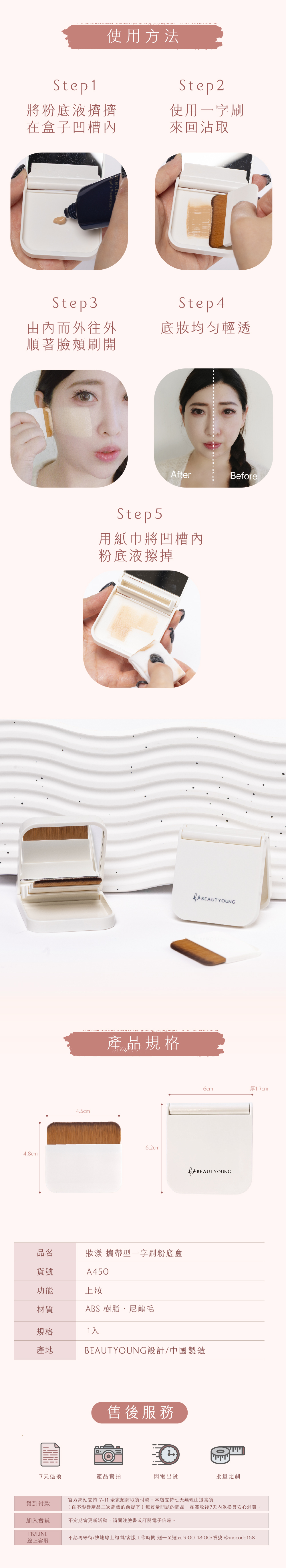 ●內含粉底液凹槽:可擠壓粉底並均勻沾取,乾淨不沾手