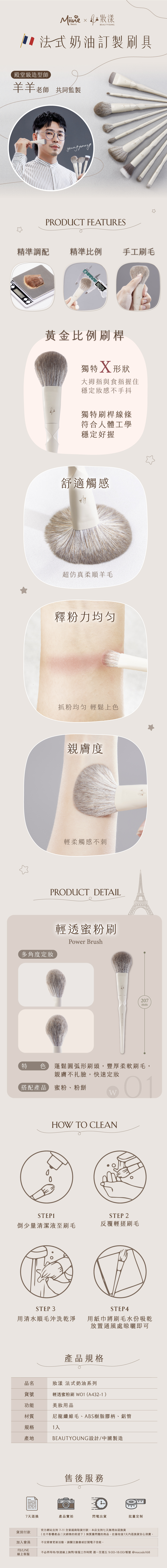 蓬鬆圓弧形刷頭搭配豐厚柔軟刷毛,親膚不扎臉,快速定妝。