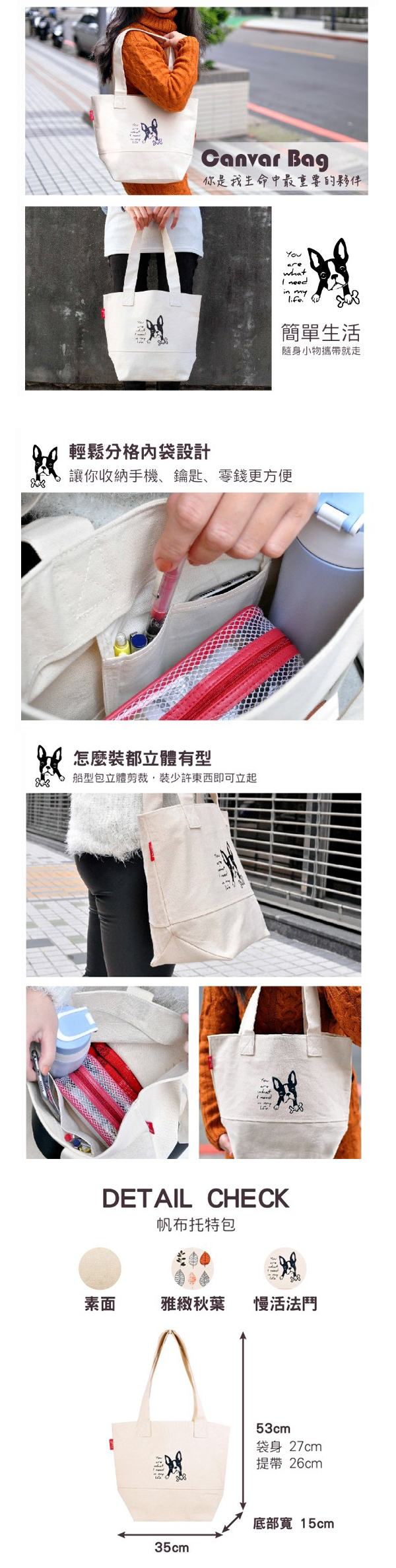 天然風帆布手提袋,12安厚度,